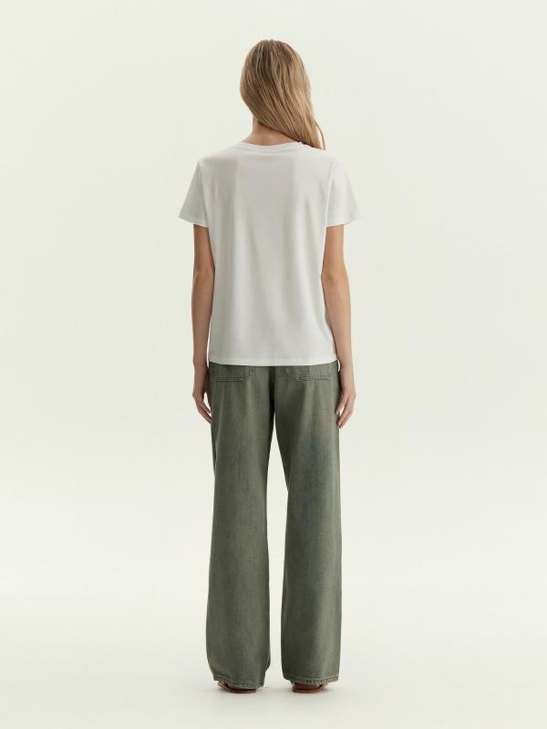 Футболка в приятном оттенке серого — отличный выбор на каждый день. Выполнена из плотного хлопка энзимной варки: этим обеспечиваются необычная фактура и эффект винтажности. Удлинённая модель прямого кроя со спущенным плечом и круглой горловиной смотрится стильно. Идеальная пара к плотному тёмному дениму и не только.