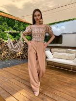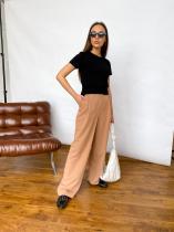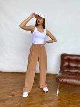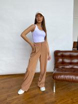 Широкие прямые брюки с защипами выполнены из лёгкой, струящейся костюмной ткани. Застежка на пуговицу и молнию. Два боковых кармана. ОБРАЩАЕМ ВАШЕ ВНИМАНИЕ, что брюки Малу большемерят на размер (42 размер соответствует 44, 44 соответствует 46 и т.д.). ЗАМЕРЫ ИЗДЕЛИЙ в цвете сирень, бежевый, бурбон и черный: 42 - 36см(ПОТ), 50см(ПОБ), 35,5см(ПО одного Бедра у основания), 37см(шов сидения)