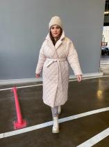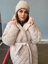 Стеганое пальто-халат с отложным воротником, двумя боковыми карманами, в комплекте пояс. Пальто застегивается на 4 кнопки в основном ряду и на 1 потайную кнопку во втором ряду. Изделие выполнено из прочного, износостойкого материала, который имеет водоотталкивающую пропитку. Утеплитель- гипоаллергенный синтепух плотностью 120 г-м2. На подкладке. Длинное стеганое пальто- отличный вариант для межсезонья и довольно теплой зимы. ЗАМЕРЫ ИЗДЕЛИЯ в размерах: 52 - 64см(ПОГ), 62см(ПОТ), 62см(ПОБ), 72см(длина рукава по внешней стороне с учетом плеча), 24см(Побхват плеча), 113см(длина по спинке вниз от 7го шейного позвонка)