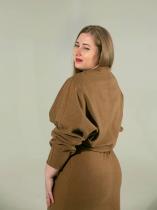 Уникальное платье, разработка которого заняла несколько недель. О ткани - плотная, мягкая на ощупь трикотажная костюмная ткань. Теплая. Хорошо тянется в бедрах, поэтому юбка садится четко по фигуре, не стесняя движений и не акцентируя места с особенностями. И неважно, девушка 42го или 60го размера. Благодаря ткани и шлице в этой юбке свободно можно присесть. О посадке - юбка предположительно заканчивается в районе талии, верх платья рекомендуем уложить так, чтобы не скрыть талию и обеспечить небольшой напуск. В этом также поможет потайная молния по левому боку. Рукава - манжеты представляют собой зашитые склады. Плотные, тянутся. Красиво смотрятся, если слегка или полностью открывают запястье. Запах - если по какой-то причине он вам окажется великоват, рекомендуем его не зашивать. Скорее всего, укоротив горловину в районе плечевого шва, у вас получится его идеально посадить по вашей фигуре. ЗАМЕРЫ ИЗДЕЛИЯ в размерах: 52 - 46см(ПОТ), 56,5см(ПОБ), 79см(длина рукава по внешней стороне с учетом плеча), 133см (дл