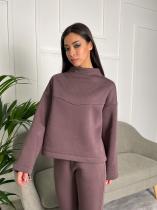 Очень качественно пошитый уютный теплый свитшот. Воротник-стойка и простежка удачно акцентируют внимание на изящности шеи и плеч. Ткань - хлопковая трехнитка с флисовым начесом. ВНИМАНИЕ: темные цвета рекомендуем стирать с близкими цветами. Возможен сход краски и, в результате, окрашивание изделий светлых тонов. ЕЩЕ ВНИМАНИЯ: ткань может закошлачиваться от механического трения с фурнитурой сумки или негладкой подкладкой куртки или жакета. Для сохранения первоначального вида кофты рекомендуем такое трение свести к минимуму. Свитшот трикотажный, 100% совпадение с размерами возможно, но допустимы отклонения. ЗАМЕРЫ ИЗДЕЛИЯ в размерах: 42 - 60см (ПОГ), 58см(ПОТ), 21см(полуохват плеча), 74см(длина рукава по внешней стороне с учетом плеча)
