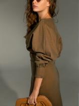 Уникальное платье, разработка которого заняла несколько недель. О ткани - плотная, мягкая на ощупь трикотажная костюмная ткань. Теплая. Хорошо тянется в бедрах, поэтому юбка садится четко по фигуре, не стесняя движений и не акцентируя места с особенностями. И неважно, девушка 42го или 60го размера. Благодаря ткани и шлице в этой юбке свободно можно присесть. О посадке - юбка предположительно заканчивается в районе талии, верх платья рекомендуем уложить так, чтобы не скрыть талию и обеспечить небольшой напуск. В этом также поможет потайная молния по левому боку. Рукава - манжеты представляют собой зашитые склады. Плотные, тянутся. Красиво смотрятся, если слегка или полностью открывают запястье. Запах - если по какой-то причине он вам окажется великоват, рекомендуем его не зашивать. Скорее всего, укоротив горловину в районе плечевого шва, у вас получится его идеально посадить по вашей фигуре. ЗАМЕРЫ ИЗДЕЛИЯ в размерах: 42 - 36см(ПОТ), 46см(ПОБ), 74см(длина рукава по внешней стороне с учетом плеча), 129см (длин