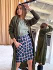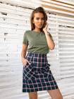 Юбка изготовлена из костюмной ткани в клетку, прямая, длинной над коленом. Переднее полотнище юбки – цельнокроеное, с талиевыми вытачками, с накладными карманами, со шлевками, с центральной застежкой на тесьму «молния». Заднее полотнище юбки - цельнокроеное, с талиевыми вытачками.