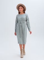 Платье выполнено из плотного принтованного трикотажа. Длина миди. Пояс съёмный, идёт в комплекте. Две полки, на которых пришиты 6 декоративных пуговиц, сшиты вместе. Платье сконструировано так, что его можно одевать пуговицами назад или наперёд. Экспериментируйте и создавайте разные образы! ЗАМЕРЫ ИЗДЕЛИЙ в размерах: 42 - 48см(ПОГ), 45см(ПОТ), 47см(ПОБ), 19см(Побхват плеча), 68см(длина рукава с учетом плеча), 111см(длина по переду от основания плеча)