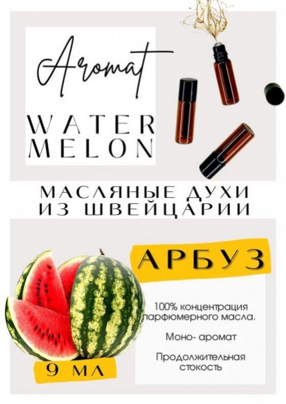 Духи Арбуз (Watermelon)- это моно-аромат Арбуза Сочный, яркий и свеже- сладкий Парфюмерные композиции по мотивам известных брендов 100% содержание масел в парфюме Без спирта Стойкость на высшем уровне Формат мини парфюма удобно брать с собой Парфюм во флаконе в виде ролика Минимальный расход