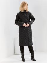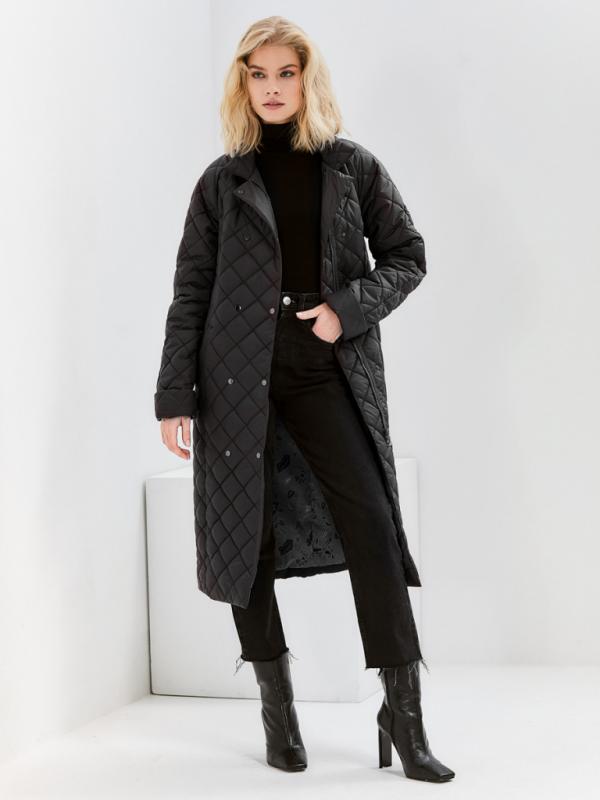 Классический стеганный плащ прямого силуэта с высокой стойкой. По спинке располагается пата, создающая эффект приталенности. Рукав покроя реглан с отворотом по низу. Удобные карманы на листочках. Изделие двубортное, застегивается на кнопки и центральную молнию. Ткань JS-30, утепление ORSOTERM (от +5°C до +15°C). Размерный ряд: 42- 56. Длина изделия- 108см., длина рукава-65см. Изделие выполнено цветах: черный, темно-пурпурный.
