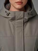 Длина изделия по спинке: 100 см Длина рукава: 64 см Плотность утеплителя: синтепон 100 г-м2 Температурный режим: от +10°C до +18°C Покрой: прямой Тип рукава: спущенное плечо, внизу оформлен резинкой Тип карманов: накладные. Карманы имеют два входа. Состав: 100% полиэстер Материал подкладки: 100% полиэстер Ткань: матовая с мембраной. Размеры: 42-56 Детали: Капюшон не съемный, застежка на молнию в цвет и потайные кнопки.