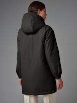 Длина изделия по спинке: 100 см Длина рукава: 64 см Плотность утеплителя: синтепон 100 г-м2 Температурный режим: от +10°C до +18°C Покрой: прямой Тип рукава: спущенное плечо, внизу оформлен резинкой Тип карманов: накладные. Карманы имеют два входа. Состав: 100% полиэстер Материал подкладки: 100% полиэстер Ткань: матовая с мембраной. Размеры: 42-56 Детали: Капюшон не съемный, застежка на молнию в цвет и потайные кнопки.