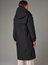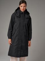 Утепленный плащ прямого силуэта со спущенным рукавом на резинке. Застежка на молнию в цвет изделия и на потайные кнопки. В изделии два функциональных кармана и один внутренний. Капюшон отстежной. Рукав втачной со спущенной линией плеча. По спинке изделия по линии талии есть утяжка с выходом на подкладку. Плащ выполнен из ткани на мембране с качественной водоотталкивающей пропиткой. Температурный режим изделия (от +10°C до +18°C). Утеплитель нового поколения ORSOTERM.150 г-м2.