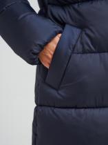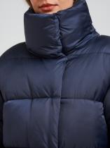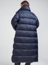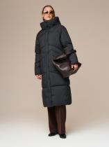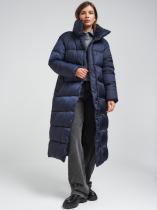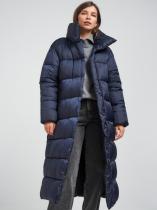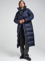 Пуховик прямого силуэта на молнии и потайных кнопках. Рукав со спущенным плечом. По низу рукава идет внутренняя ветрозащитная утяжка на резинке. Горловина изделия оформлена воротником стойкой на магнитных кнопках. В изделии два функциональных удобных кармана оформленные листочками на магнитах. Ткань - плащевая с водоотталкивающей пропиткой. Утепление: Био-пух 250 гр. Рекомендуемый температурный режим (от -5°C до -20°C). Длина изделия -120 см. Длина рукава - 64 см.