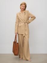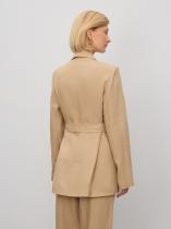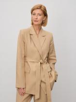 Элегантный льняной жакет со стильной асимметрией и потайными пуговицами интригует необычным дизайном. Ещё одно его важное достоинство — универсальность. Такая вещь будет органично смотреться и в офисе, и в неформальной обстановке. Расслабленности добавляет пояс-кушак, которым можно дополнительно акцентировать талию. А английский воротник и карманы с клапанами приближают к деловому стилю. Полуприталенная удлинённая модель не сковывает движения и хорошо садится на любую фигуру. Изделие с полностью натуральным составом выполнено изо льна на хлопковой подкладке. Незаменимая вещь в функциональном гардеробе на лето.