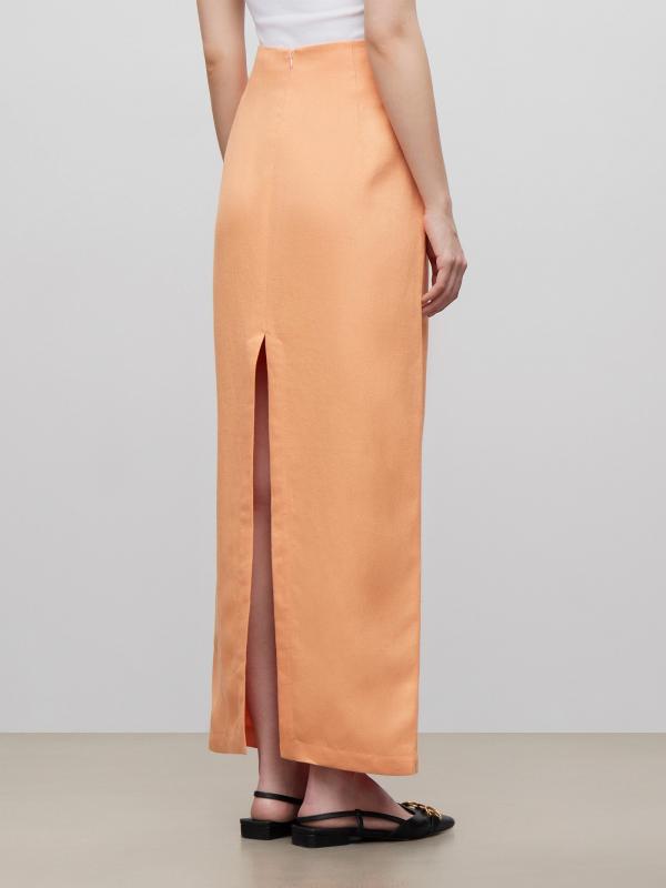 Жизнерадостный оттенок и натуральный материал — рецепт лучшего образа на лето. Юбка изо льна и вискозы выполнена в главном цвете года по Pantone: персиковый пух. Она станет основой "