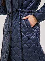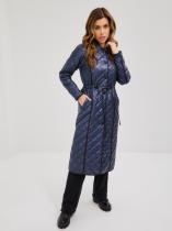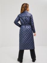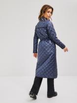 Стильный стеганый однобортный плащ прямого силуэта с кантами и утяжкой на уровне талии. Застежка на кнопках. Кулиска выполнена из эко-кожи. Рукав со спущенным плечом. Имеются два кармана с листочками на кнопках. Есть внутренний карман. Ткань изделия обработана качественной водоотталкивающей пропиткой. Утепление нового поколения ORSOTERM 100 гр., рекомендуемый температурный режим от +10°C до +18°C. Длина изделия: 120 см. Длина рукава: 64 см. Размеры: 42 - 56.