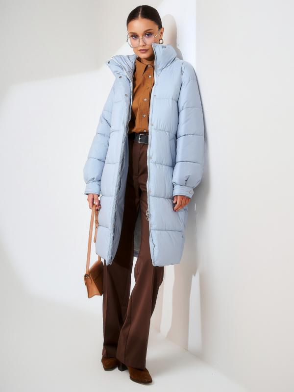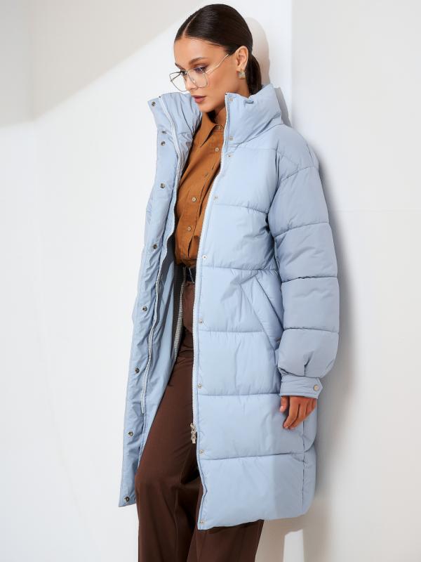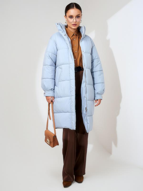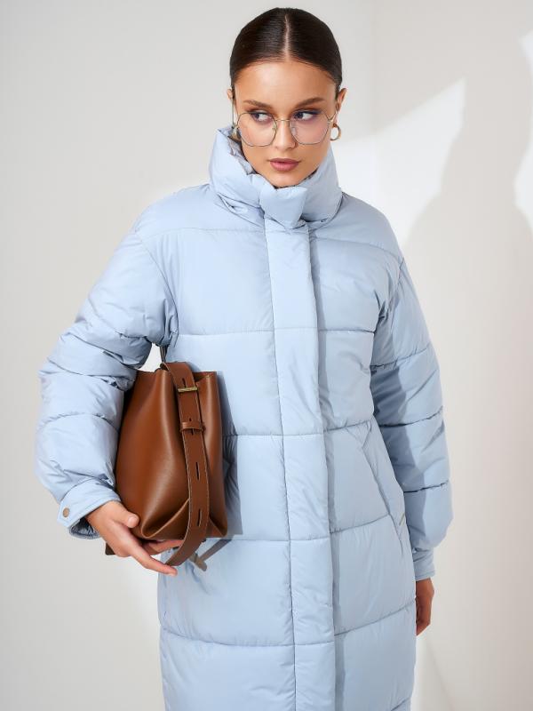 Пуховик женский серо-голубой