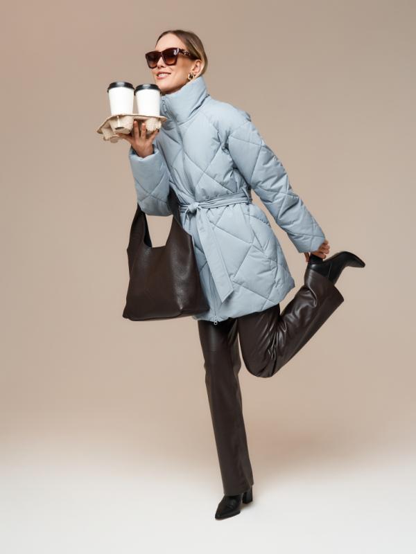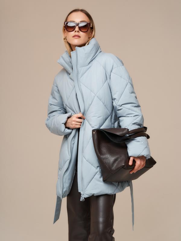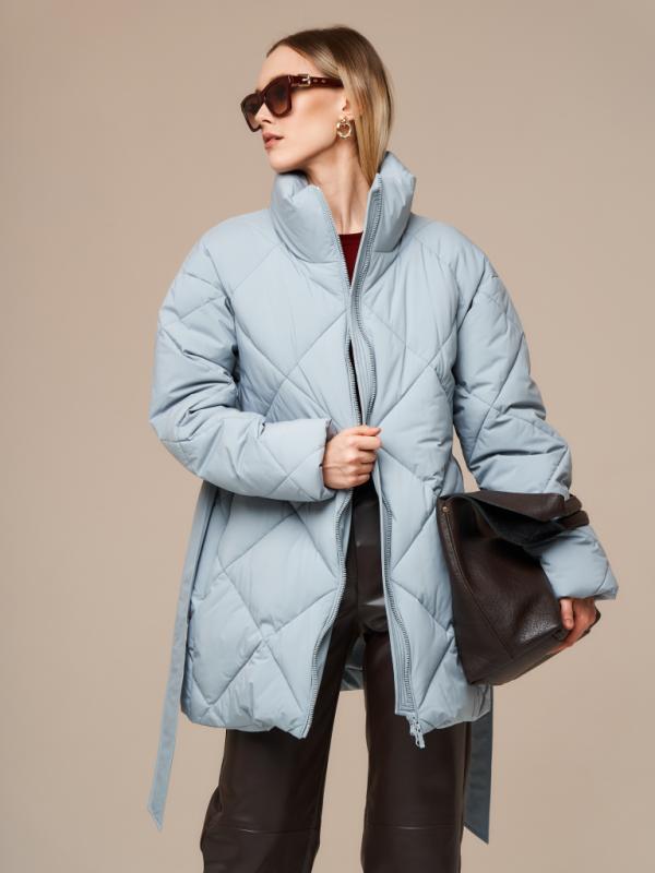 Пуховик женский серо-голубой
