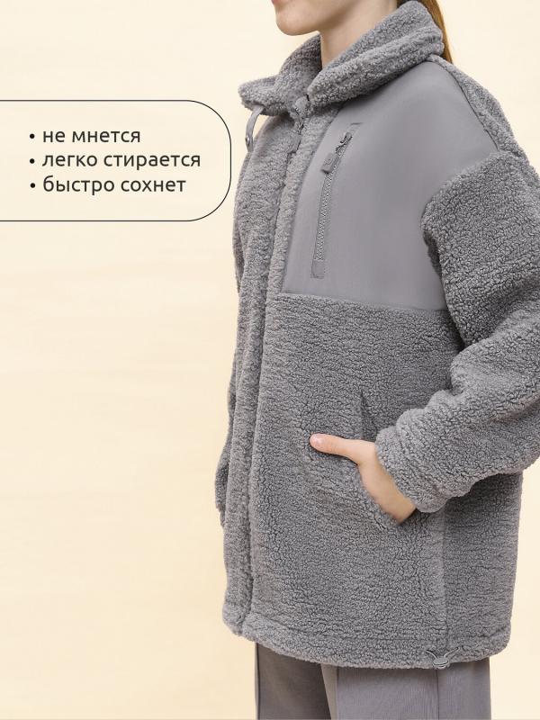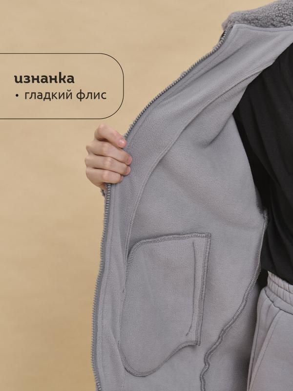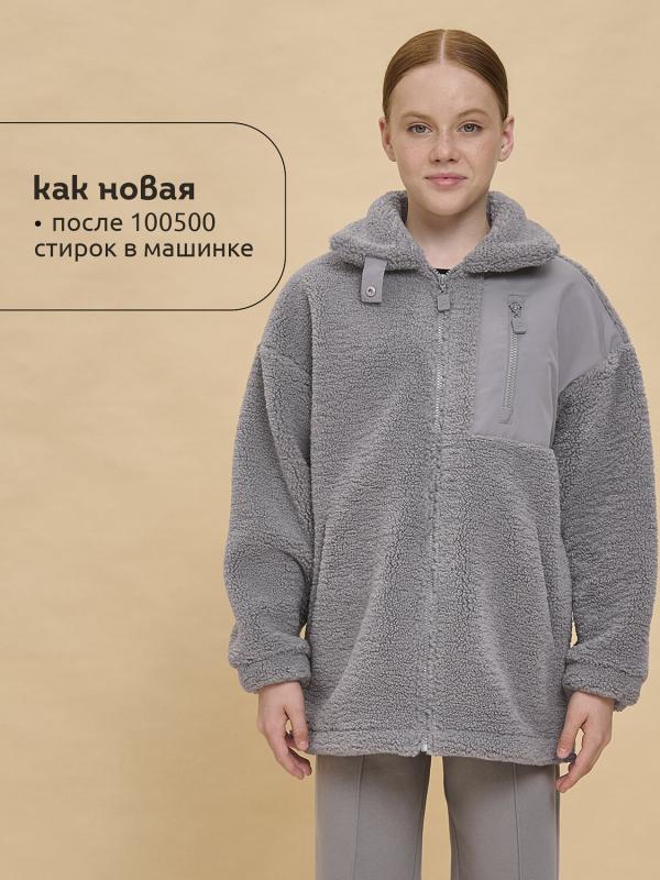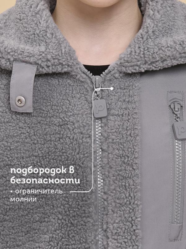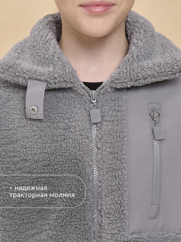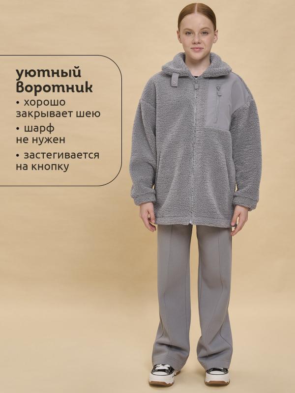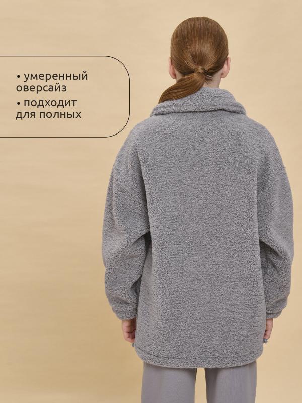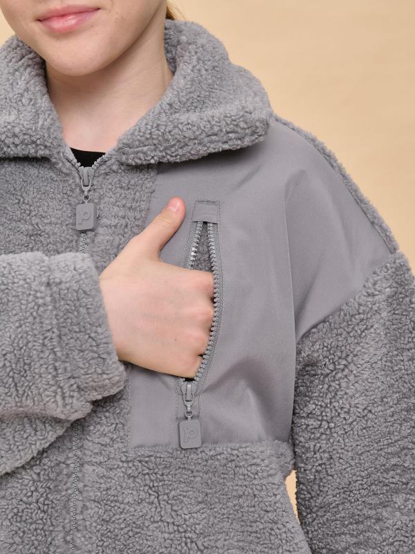 Толстовка детская для девочки. Куртка выполнена в сочетании двух материалов: бербер-флиса с мягкой фактурой «барашка» и гладкой курточной ткани. Это один из наиболее акутальных трендов сезона. Плюшевая толстовка модного оверсайз-силуэта со спущенным плечом не будет стеснять движений ребёнка, подарит ощущение комфорта и уюта. По переду застёжка на центральную молнию. Толстовка дополнена отложным воротником, который можно трансформировать с воротник-стойку с застёжкой на пату из курточной ткани с кнопкой — шея ребёнка защищена от холода и ветра. Куртка дополнена удобными прорезными карманами по бокам. Слева по переду вставка из курточного материала с прорезным карманом — стильное и практичное решение. Ткань вокруг кармана не будет мараться от частых прикосновений. По низу изделия, по бокам утяжка на эластичный шнур — можно регулировать объём. Зип-толстовка однотонная, без принта. Модель неприхотлива в уходе. В составе основного материала — толстовка тёплая, лёгка