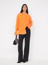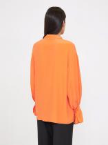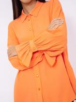 Яркая рубашка мандаринового цвета задаст позитивный тон всему дню. Манжеты клёш со сборкой делают образ наряднее. Отложной воротник регулируется пуговицами в тон рубашки. Рубашка отлично подойдёт как на каждый день, так и для особого случая.