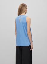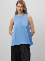 Топ в небесно-голубом цвете из лёгкого материала с содержанием вискозы. Женственная модель А-силуэта, удлинённая по бокам и спинке, делает образ эффектным. Круглый вырез под горло располагает поэкспериментировать с длинными кулонами и сотуарами. Топ можно носить как центральный самостоятельный элемент образа или соединить с кроп-жакетом. Изделие выполнено без подкладки. Застёгивается с помощью крючков на спинке. Под застёжкой располагается деликатный вырез-капля.