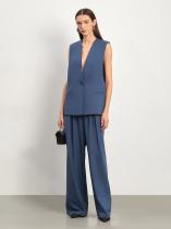 Синий жилет прямого кроя для эффектных деловых и повседневных образов, а также образов к особому случаю. Удлинённая модель на одной пуговице имеет трендовый глубокий V-вырез и углублённые проймы, что делает её оригинальнее и удобнее для создания многослойных образов. Изделие выполнено из материала с высоким содержанием вискозы, на подкладке. Дополнить жилет можно брюками или другим низом из комплекта, блузами и рубашками.