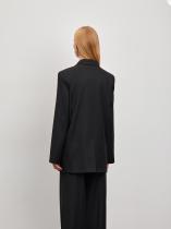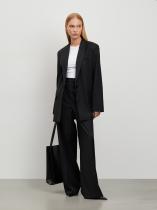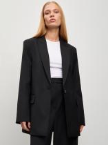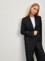 Чёрный жакет станет универсальной вещью в гардеробе. Удлинённая модель прямого кроя дополнена двумя карманами с клапанами. Жакет можно носить с брюками из комплекта для более строгого образа или сочетать с джинсами для более расслабленного стиля. Изделие изготовлено на подкладке.
