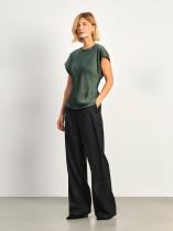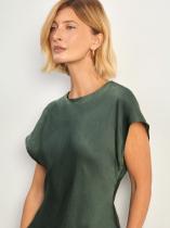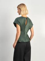 Элегантная блуза станет незаменимой в гардеробе. Она подходит и на каждый день, и для более торжественных случаев. Красиво садится за счёт кроя по косой. Ткань на основе вискозы ощущается очень уютной, мягкой и шелковистой: к ней хочется прикасаться. Глубокий и спокойный оттенок свежего мха настраивает на гармонию с собой. Изделие выполнено без подкладки, застёгивается сзади на крючки. Блуза сделает интереснее образы с базовым низом, будет сочетаться с трендовыми брюками и юбками из экокожи.