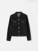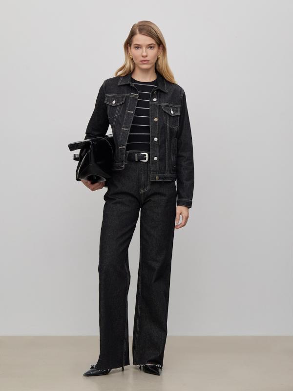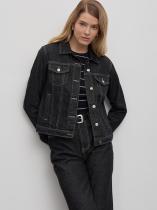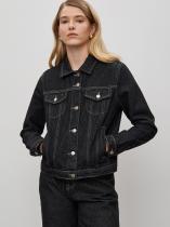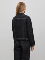 Джинсовая куртка в чёрном цвете из плотного хлопка. Модель отличают функциональные карманы с клапанами на груди и два вертикальных кармана с листочкой по бокам, стильные вертикальные швы и планка по низу изделия. На спинке имеется кокетка. Длинные рукава дополнены манжетами на пуговицах. Куртка застёгивается на ряд прочных металлических пуговиц. Дополните джинсами из комплекта и интересным первым слоем: жилетом, атласным топом, кружевным боди.