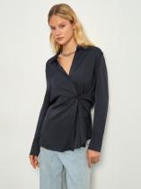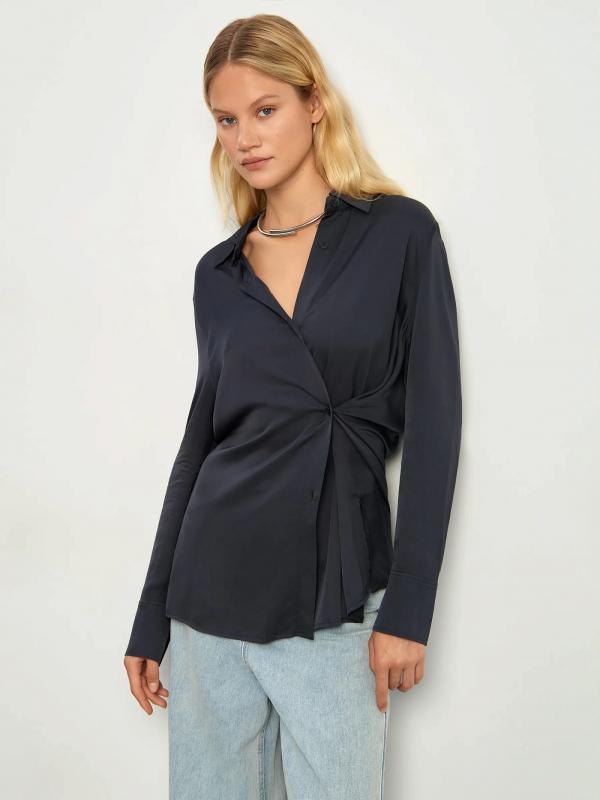 Однотонная рубашка из комфортной вискозы для офисных и повседневных образов. Классическая модель с кокеткой на спинке подойдёт к любому базовому низу. Выполнена в трендовом тёмно-сером цвете.
