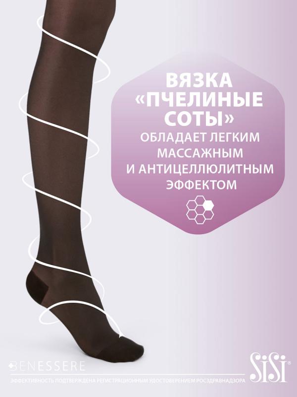 Прозрачные шелковистые колготки с распределенным давлением по ноге, сотовое плетение, гигиеническая ластовица. С успокаивающим, массажным и лечебным эффектом.
