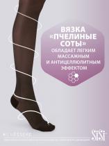 Прозрачные шелковистые колготки, сотовое плетение, гигиеническая ластовица, распределенное давление по ноге. С успокаивающим, массажным и лечебным эффектом.