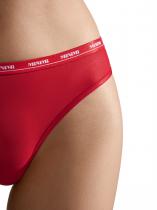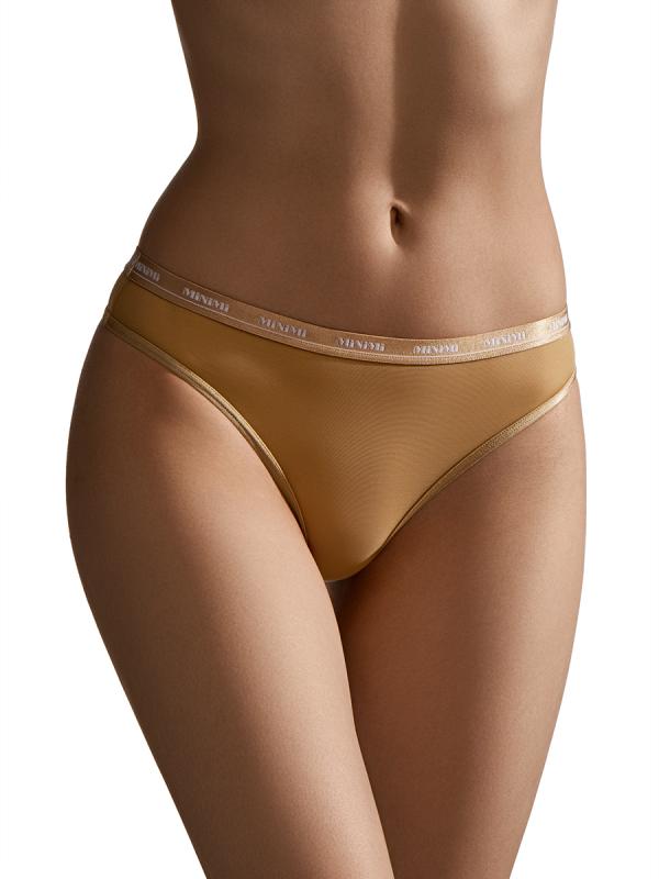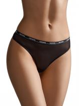 Трусы «стринги» из мягкой полупрозрачной сетки со средней линией талии и жаккардовой брендированной резинкой. Соблазнительно подчеркивают бедра и практически полностью открывают ягодицы. Мягкая резинка и деликатная обработка края обеспечивают почти незаметное прилегание. Гигиеничная ластовица из хлопка обеспечивает дополнительный комфорт.