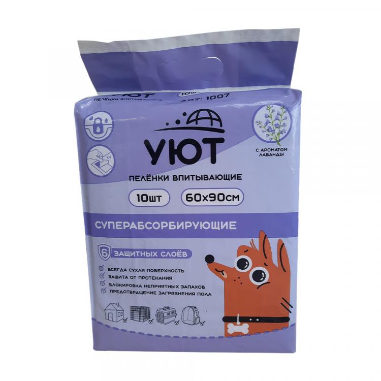 УЮТ пеленки впитывающие с лавандой, гелевые, XL (60*90см), с липкими фиксаторами,10шт. в п.,1кор*20п