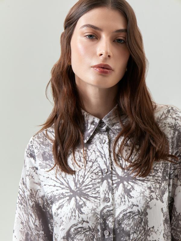 Платье-рубашка из лёгкой вискозы отличается абстрактным принтом в трендах сезона. Подойдёт для работы и личных планов. Сделано на подкладке из вискозы.
