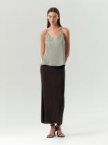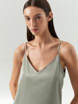 Топ в актуальном оттенке между фисташкой и шалфеем для стильных образов. Выполнен из тактильно приятной вискозы. Модель на регулируемых тонких бретелях имеет широкий V-образный вырез. Подойдёт к любому базовому низу.