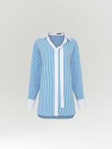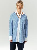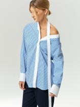 нотку в деловые образы. При этом безукоризненная белизна держащих форму широких манжет, строгая голубая полоска и лаконичный прямой крой сохраняют образ в рамках офисного дресс-кода. Такая вещь в гардеробе продемонстрирует креативное мышление. Выполнена из натурального хлопка с небольшим добавлением эластана для лучшей посадки.