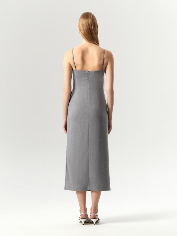 Утончённый и трендовый сарафан из костюмной ткани подойдёт к самым разным случаям. Для деловых образов можно стилизовать с жакетом из комплекта и не только. Сарафан сделан из приятного на ощупь материала в элегантном цветовом решении. Светло-серый цвет и тонкая светлая полоска смотрятся актуально и ненавязчиво. Эффектная драпировка, один из ключевых трендов года, добавляет образу выразительности. Платье сделано на подкладке с высоким содержанием дышащей вискозы. Может стать частью капсулы shift с жакетом, брюками и ещё одним платьем.