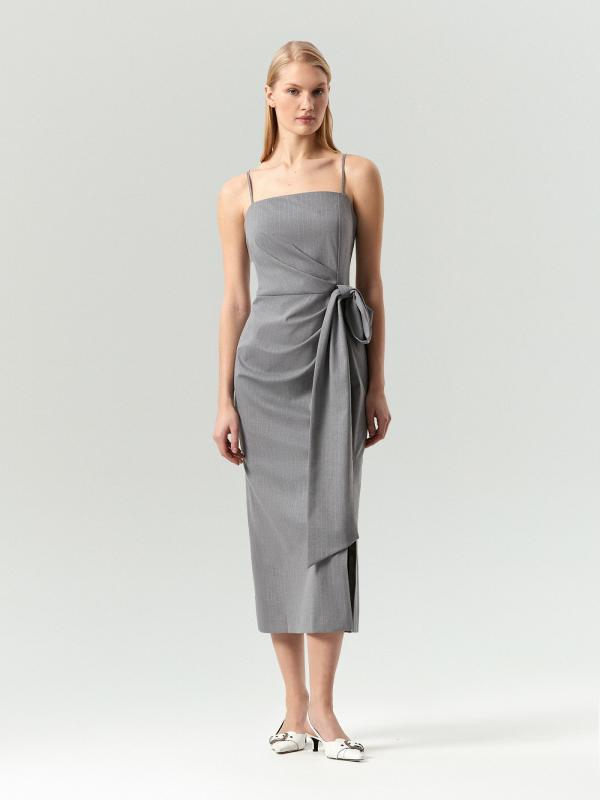 Платье миди в полоску с узлом на талии
