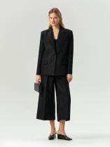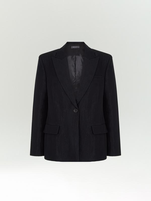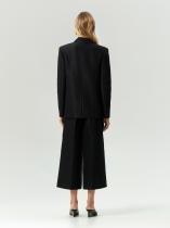 Роскошный выбор к особому случаю и не только. Дорогая фактура с лёгким жатым эффектом, цвет с красивым отливом. Всё это дают бленд любимых натуральных материалов — хлопка, льна и тенсела с добавлением нейлона, и особая обработка. Жакет выполнен на подкладке с вискозой. Удлинённая прямая модель в меру свободная, на одной пуговице чуть ниже талии. Такой вариант демонстрирует характер, смотрится статусно, но не слишком строго. Хорошо сочетается с платьями-комбинациями и не только. Завершить образ с жакетом можно стильными кюлотами из комплекта.