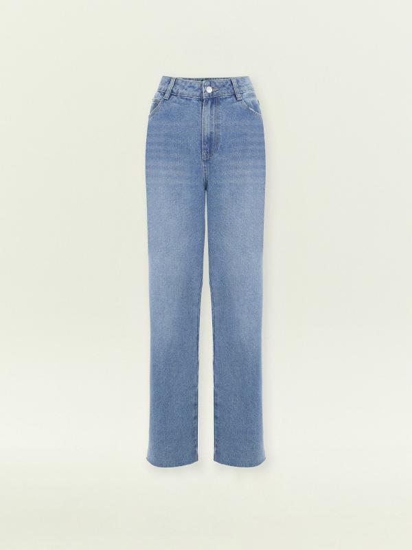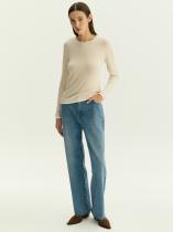 Джинсы в классическом сине-голубом цвете с необработанным краем. Визуально вытягивают силуэт, делают его плавнее. Посадка мom fit удачно смотрится на разных типах фигуры. По длине модель особенно хорошо подходит на средний рост. Джинсы выполнены из качественного хлопка приятной фактуры.