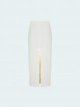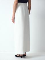 Юбка в молочном цвете подойдёт для повседневных и торжественных образов. Спереди юбку украшает трендовый разрез: он начинается чуть выше колена. Модель А-силуэта имеет высокую посадку и универсальную длину макси. Застёгивается сзади на молнию.