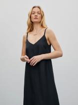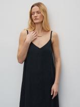 Чёрный сарафан изо льна — базовая вещь на лето. Выполнен на комфортной подкладке из хлопка. Модель А-силуэта в длине миди имеет крупный разрез спереди. Дополнена молнией сбоку.