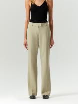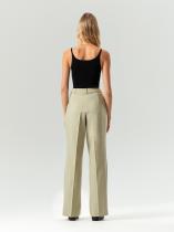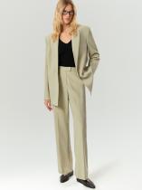 Лаконичные брюки полной длины, высокой посадки и с легким расклешением смотрятся очень стильно. Они отлично завершат деловой или выходной образ. Красивый оттенок между хаки и фисташковым сделает нежнее любые образы и впишется в офисный дресс-код. Дополнить образ с брюками можно жакетом из комплекта.