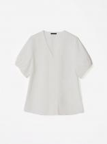 Женственная блуза изо льна и вискозы в молочном цвете — must have летнего гардероба. Модель без пуговиц имеет V-образный вырез, от которого к низу изделия спускается планка в тон. Изюминка этой модели — рукава с изящной сборкой по краям. Свободные короткие рукава приобретают более изысканные очертания за счёт мягких складок. Блуза отлично вписывается в стиль коттеджкор, станет базой для образов в стиле бохо-шик, придаст очарование кэжуальным образам на каждый день. Лаконичность кроя и цветового решения делает её универсальной. Дополнить блузу можно брюками из комплекта.