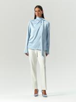 Элегантная блуза-трансформер из нежного вискозного атласа отличается оригинальным воротником, который переходит в шарф. Отлётные части воротника можно стилизовать множеством разных способов, каждый раз создавая уникальный образ. Можно сформировать высокую горловину с драпировкой или декольте с отложным воротником, повязать на талии или на шее, как бант сбоку или по центру, набросить как шарф. Блуза отлично подойдёт для особых случаев и не только. Сочетается с любым базовым низом.
