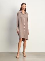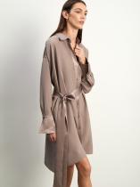 Элегантное и необычное платье-рубашка в цвете мокко. Манжеты и линия плеч, воротник и планка, а также пояс-кушак выполнены из атласа. Интересный контраст между матовой и атласной фактурами делает платье отличным выбором как для будней, так и для праздников. Приталенный силуэт и длина чуть выше колена являются универсальным решением, а трендовый асимметричный подол добавляет в образ изюминку. Платье выполнено из лёгкого и тактильно приятного материала с высоким содержанием вискозы. Оно станет одной из любимых вещей в гардеробе, которую хочется носить чаще.