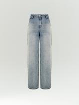 Джинсы свободного кроя в светло-голубом цвете с эффектом потёртости станут отличной основой повседневных летних образов. Выполнены с высоким содержанием хлопка. Украшены бахромой по боковым швам. Завершить образ можно вязаным трикотажем и другими вариантами верха.