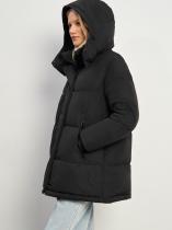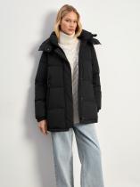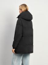 Пуховик в чёрном цвете утеплён наполнителем с 80% натурального утиного пуха и 20% пера. Рассчитан на температуры до -15°C. Модель имеет универсальный прямой крой. Дополнена комфортным капюшоном. Застёгивается на удобные кнопки и молнию.