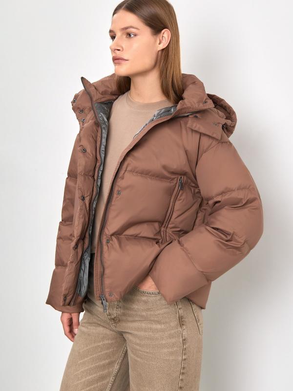 Пуховик в трендовом оттенке горячего шоколада украсит любой повседневный образ. Утеплён наполнителем с 90% натурального пуха и 10% пера. Рассчитан на температуры до -15°C. Плотная набивка обеспечивает тепло и долговечность. Модель дополнена комфортным капюшоном. Застёгивается на удобные кнопки и молнию. Силуэт можно регулировать с помощью потайной кулиски.