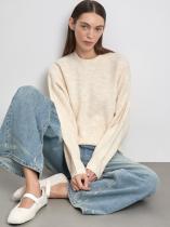Мягкий базовый джемпер на каждый день. Выполнен в молочном цвете из практичного материала с содержанием шерсти. Свободная модель прямого кроя со спущенным плечом создаёт расслабленный образ. Сочетается с любым базовым низом.