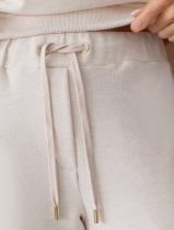 Брюки выполнены из премиального футера трехнитки без начеса. Модель дополнена эластичным поясом на резинке и хлопковым шнурком с золотистой фурнитурой. По бокам два кармана. Наличие эластана в составе гарантирует формоустойчивость и износостойкость изделия. Изделие сочетается в костюме с худи D49.049