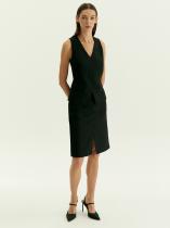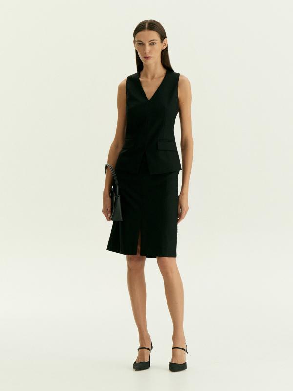 Чёрная юбка-карандаш для стильных и современных образов на каждый день. Модель средней посадки отличается разрезом спереди. Тонкий, но тёплый костюмный материал на четверть состоит из шерсти, выполнен с содержанием вискозы и добавлением эластана. Это идеальный вариант на демисезон и не только. Завершить образ с юбкой можно жилетом из комплекта.